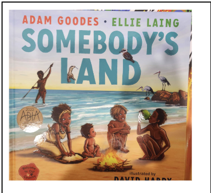 The book "Somebody's land": (Adam Goodes & Ellie Laing) A great book that introduces First Nations history and the term 'terra nullius' The land was where people built their homes, played in the sun, and sat together to tell stories.