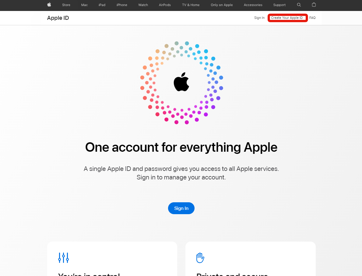 Select (Create Your Apple ID)