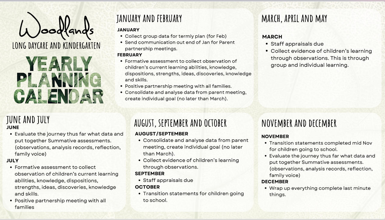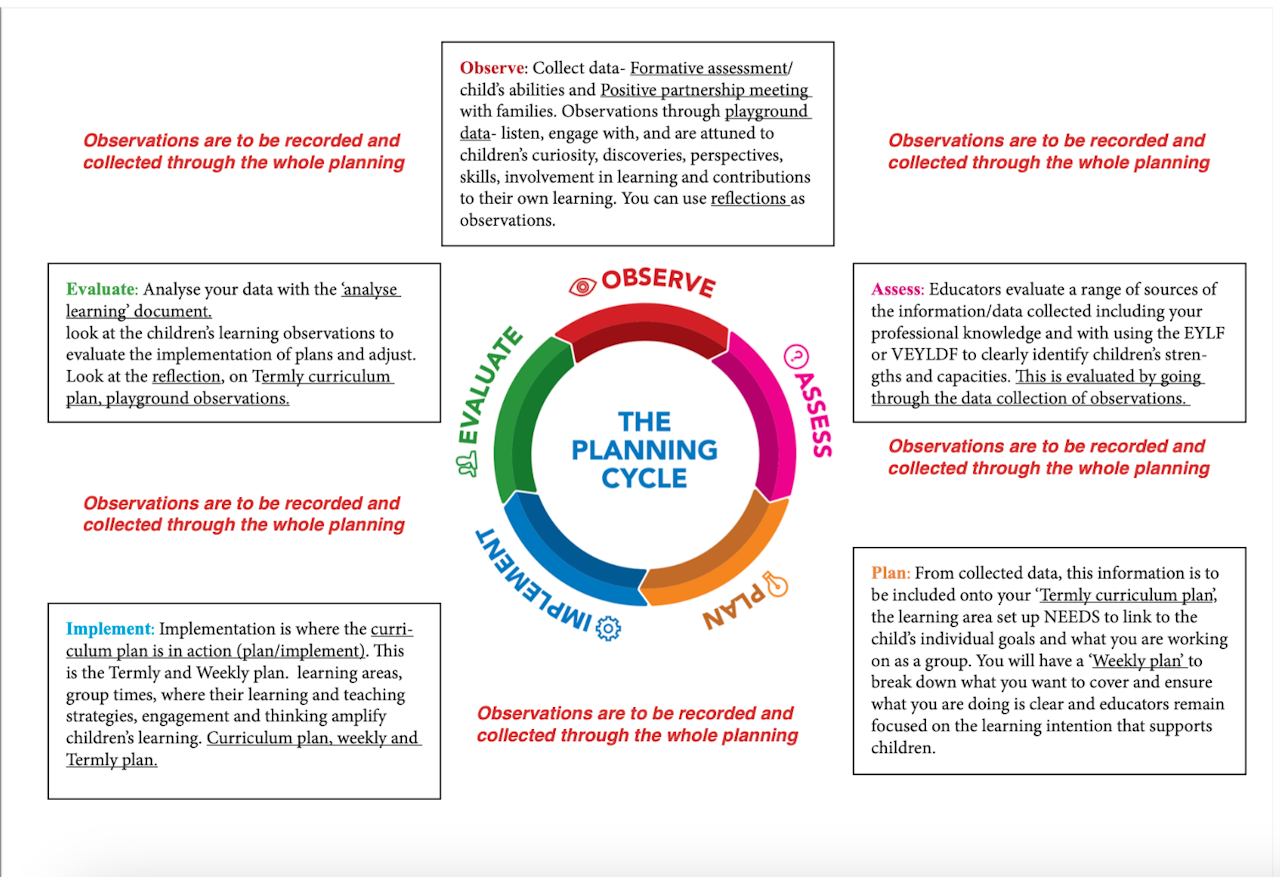1. The EYLF V2.0, the VEYLDF, NQS with CSS always in in the back of our mind to ensure we are implementing in practice.