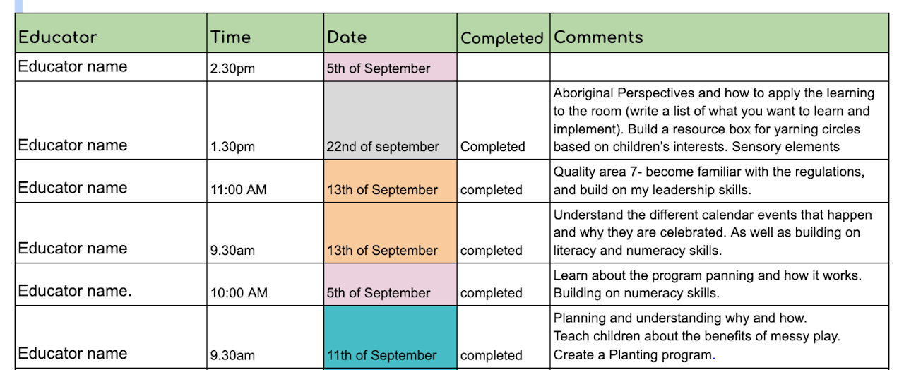 This is a way, that you as the Campus Manager can create a scheduling process to ensure you have included all Educators a time and date for their 6 month review.