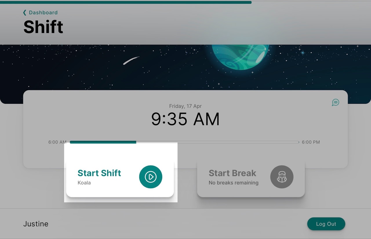 Select End Shift by logging in as normal using the above instructions